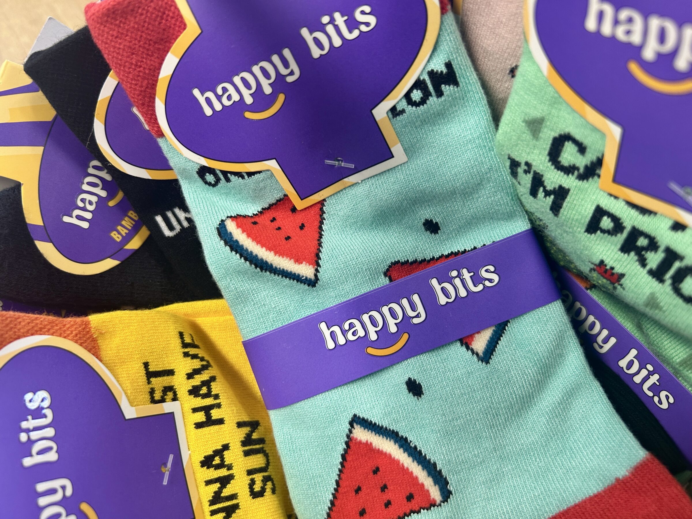 Happy Bits socks come in a variety of styles to suit different needs. You’ll find plain, practical designs that are perfect for everyday wear, as well as humorous, pun-filled patterns that make brilliant gifts and are guaranteed to raise a smile. Whether you want something understated or something that sparks joy, there’s a pair for everyone!